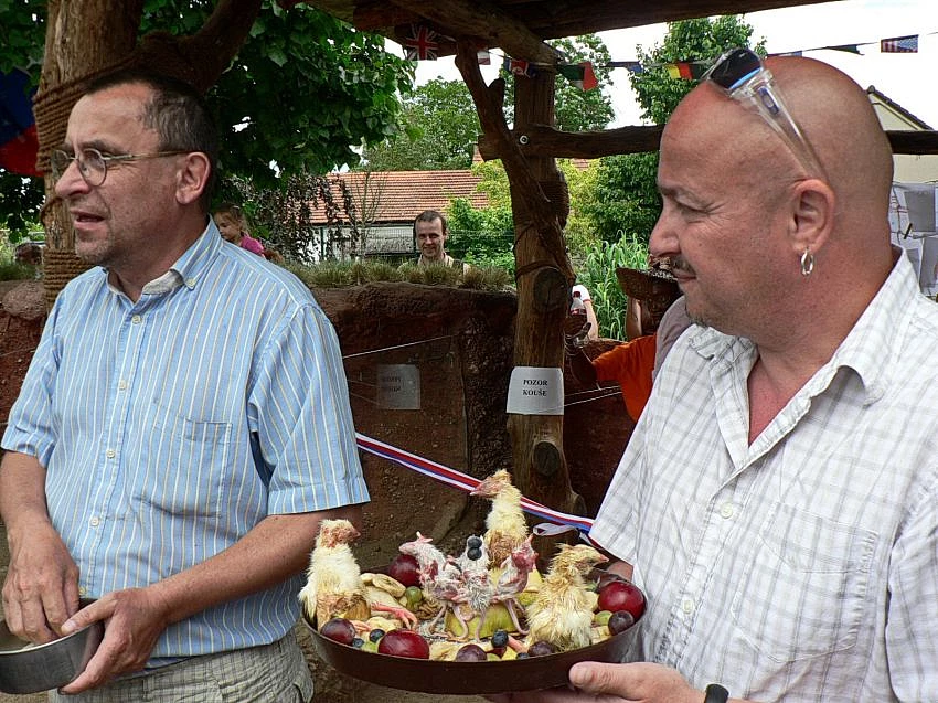 ředitel Zoo Chleby René Franěk a bavič a moderátor Zdeněk Izer při slavnostním otvírání expozice surtikat