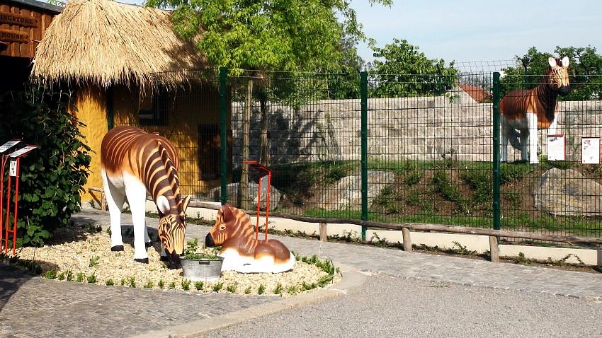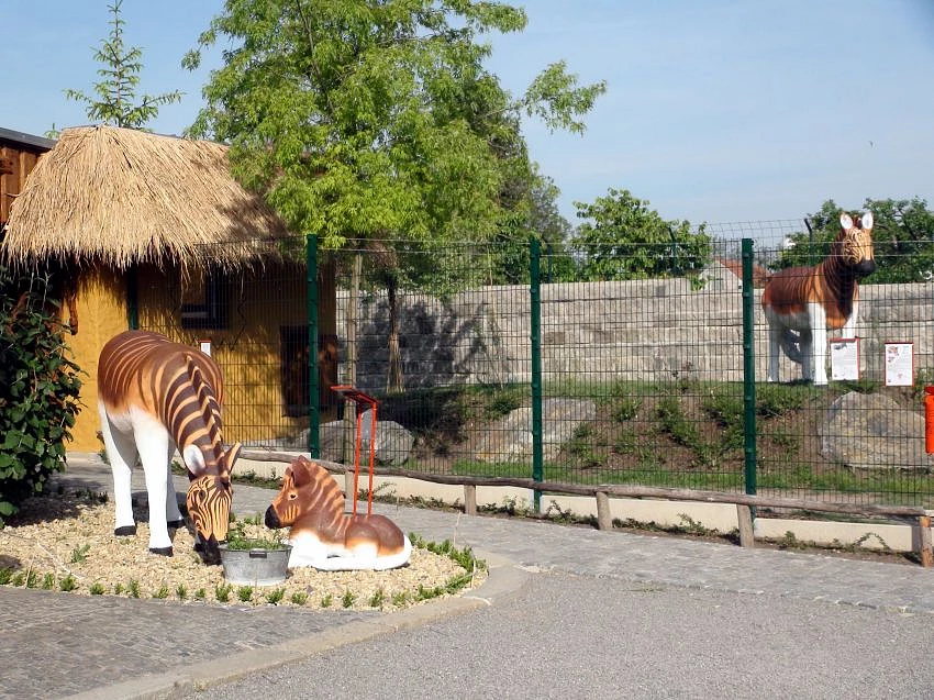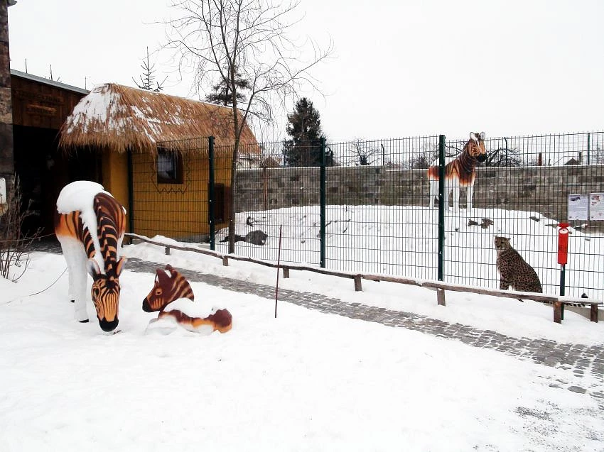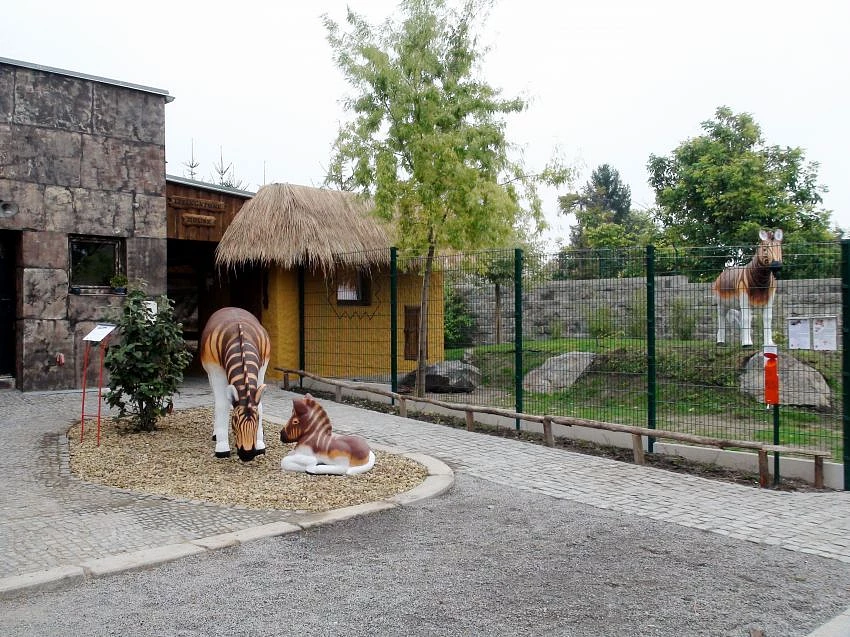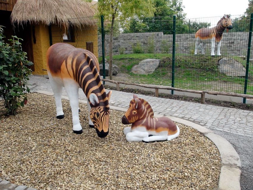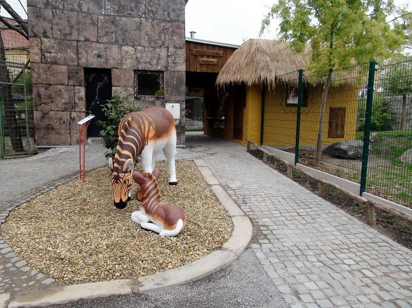 Celá gepardí expozice má samozřejmě i vnější část - výběh. Ten je zkrášlen malým domečkem v africkém stylu a železobetonovou sochou hřebce vyhubené zebry kvaga, která je v životní velikosti (2,3 m od hlavy k ocasu a 1,5 m v kohoutku). V prostoru před výběhem se "pase" i kobyla s několikadenním hříbětem. Paralela mezi Livingstonem a zebrami kvaga je velmi symbolická - Dr. Livingstone začínal svou pouť v dnešní Jihoafrické republice, čili právě tam, kde kdysi kvagy žily (v Kapsku a částečně Oraňsku). Zebry kvaga byly v přírodě vyhubeny 5 let po Livingstonově smrti (v zoo o 5 let později - 1883), je tedy pravděpodobné, že se s nimi mohl slavný cestovatel potkat nejen na obrázcích nebo písemných zprávách, ale i fyzicky.