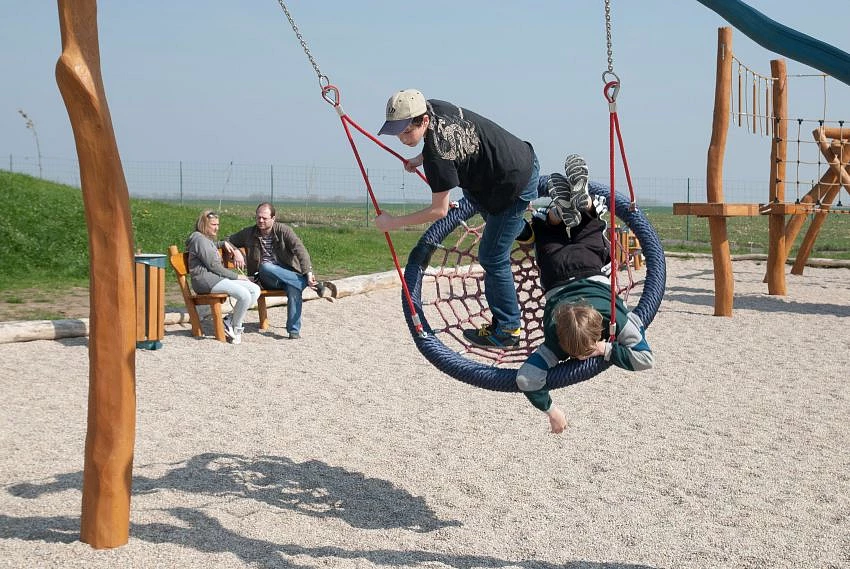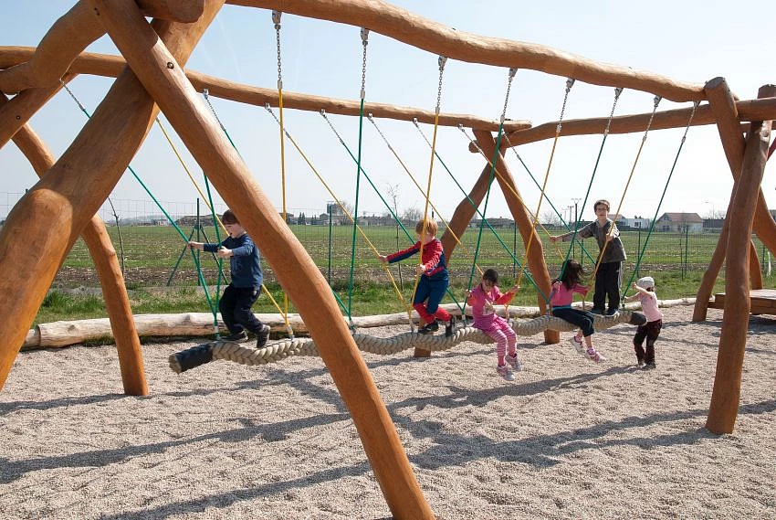 Všechny prvky hřiště jsou provedeny z lan a kvalitního akátového dřeva, jen tobogány a několik málo dalších drobností je z plastu. Celé hřiště je vymezeno dřevěnými kládami a plocha vyplněna vysokou vrstvou velmi jemného kačírku, který zabraňuje úrazům při pádech. Hřiště je pochopitelně certifikované a splňuje veškeré bezpečnostní normy.