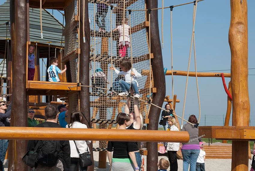Stavba obrovského dětského hřiště začala v roce 2013 a slavnostní otevření proběhlo 12. dubna 2014 v rámci slavnostního otevření Nové zoo. Fakticky bylo dětské hřiště v provozu již o něco dříve.