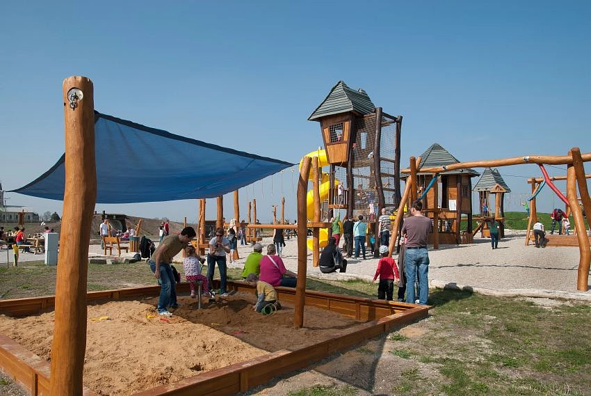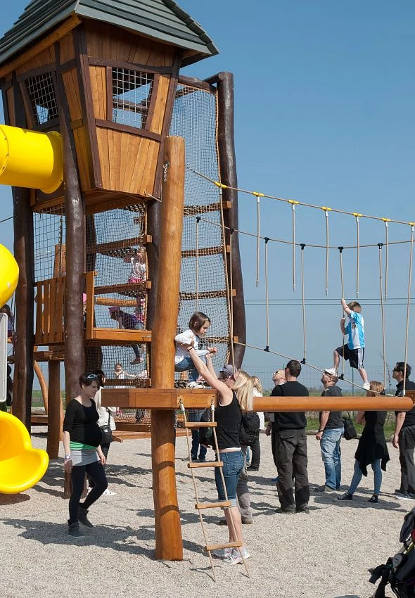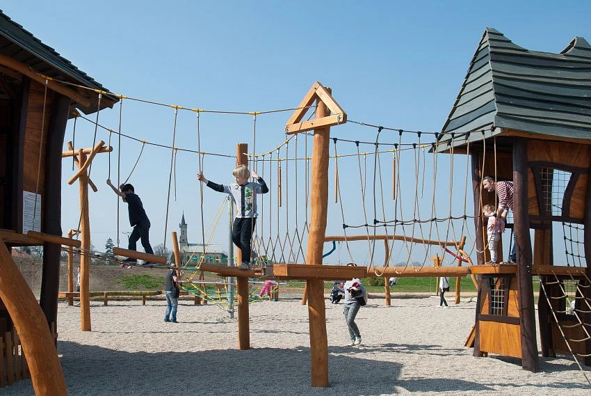 Jedná se o velmi moderní dětské hřiště, které zabírá plochu okolo 1.100 m2 - samotné hřiště je asi 30 x 35 m, ale patří k němu ještě vedlejší pískoviště o rozměrech 5 x 5 m. Dalo by se říci, že jde o hřiště dovednostní, zábavné, možná adrenalinové, zkrátka takové, kde děti musí prokázat nějakou zručnost a obratnost. Ačkoli je to celkem více než 30 atrakcí a prolézacích úseků, většina jich je spojena v jeden celek, přičemž mají jednotlivé prvky různou obtížnost, tak aby si na své přišly všechny věkové skupiny (v praxi je to tak nezřídka i v případě dospělých).