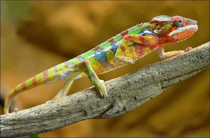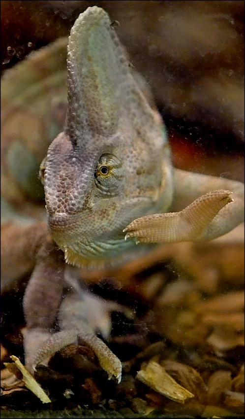 Stromové samotářské zvíře žijící na akáciích, sukulentech, keřích apod., ale i v alejích nebo na kukuřici. Samci se vzájemně nesnáší, samice spolu vychází bez problému. Den tráví obvykle 1 - 3 m nad zemí, nocuje v nejvyšších patrech rostlin.