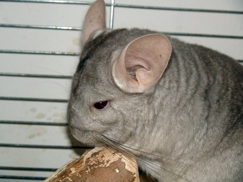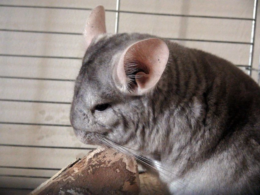 větší, v domácích chovech velmi oblíbený, hlodavec s velkýma okrouhlýma ušima, delším ocasem a hustou jemnou strstí. V zajetí existuje kromě klasické "činčilové" barvy mnoho barevných mutací, které vznikají více než 60 let - první byla bílá, pak béžová, černá, smetanová, antracitová, fialová, safírová atd.